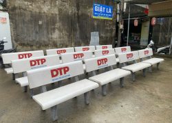 ghế đá trắng in logo